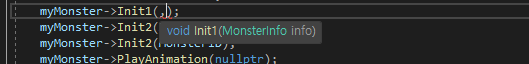 이러면 만약 사용하는 함수 PlayAnimation 내부에서 몬스터 id를 체크하는 검증이 있을 경우,