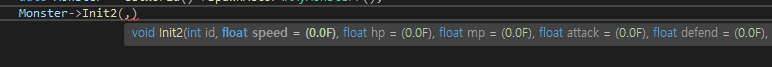 Init2를 적는 순간, id, speed, hp 등 사용자가 셋팅하고 싶을 요소들이 주르르 파라미터로 나열된다.